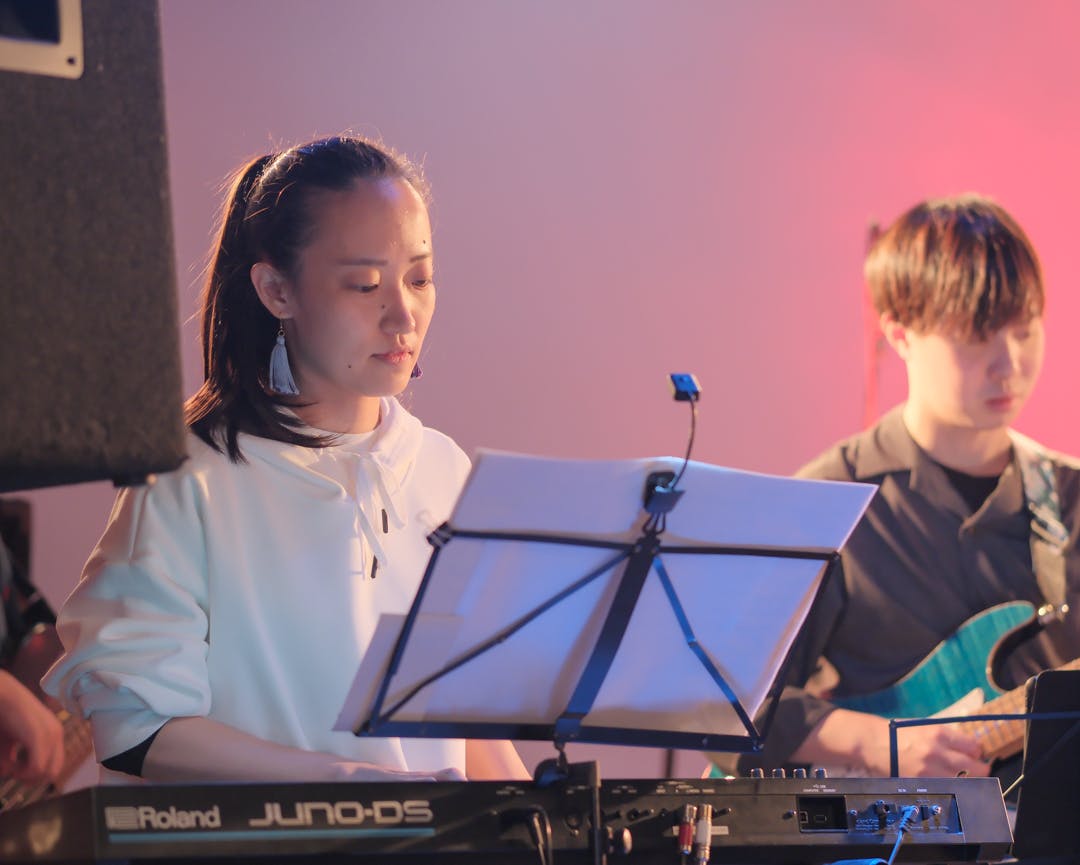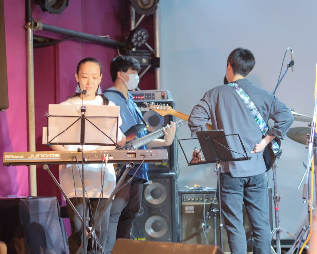 ベースのHaruki(奥)ギターのまっちゃん(右)キーボードのSHIORIN(左)