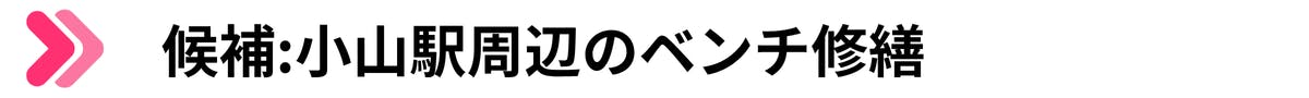 ベンチの塗装が落ち、木材が劣化しているベンチの修繕を行います。資金は塗料や木材、小山市内の事業者への委託費用として使用します。