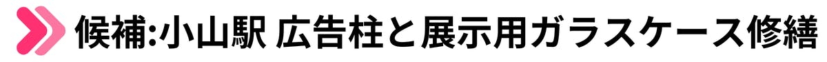 改札を出て左手、小山駅東口へと向かう通りに設置されている広告柱と展示用ガラスケースの修繕費として使用します。なおガラスケースの修繕は3つあるうちの真ん中が修繕対象になります。