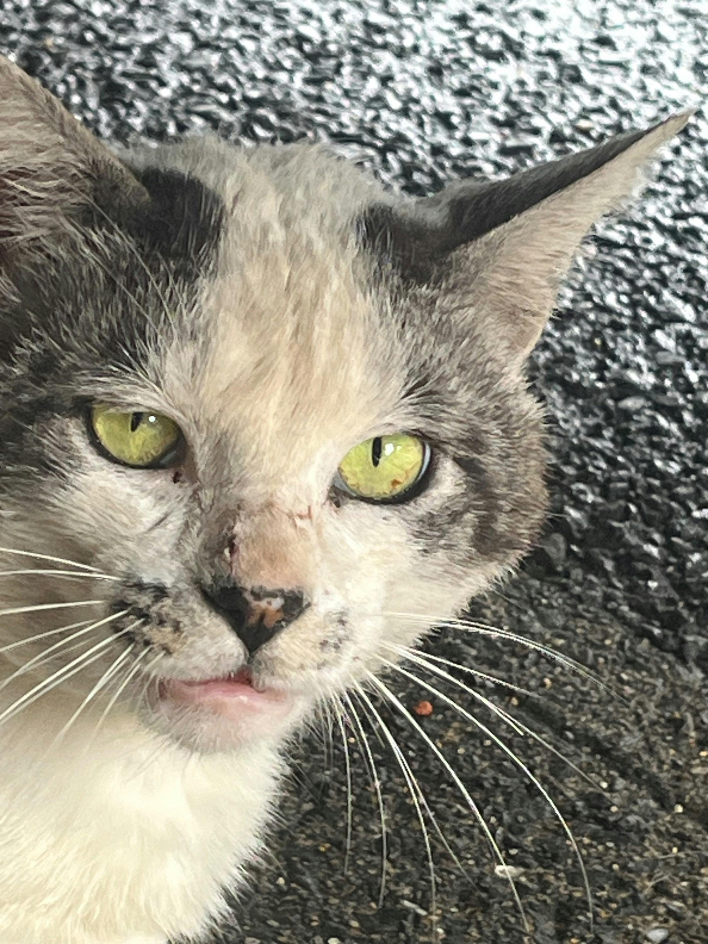 目に怪我をしている猫を保護。治療を行いながら去勢手術も実施。マーキングにより地域住民が困っていた問題も解決へ。 - 3匹目