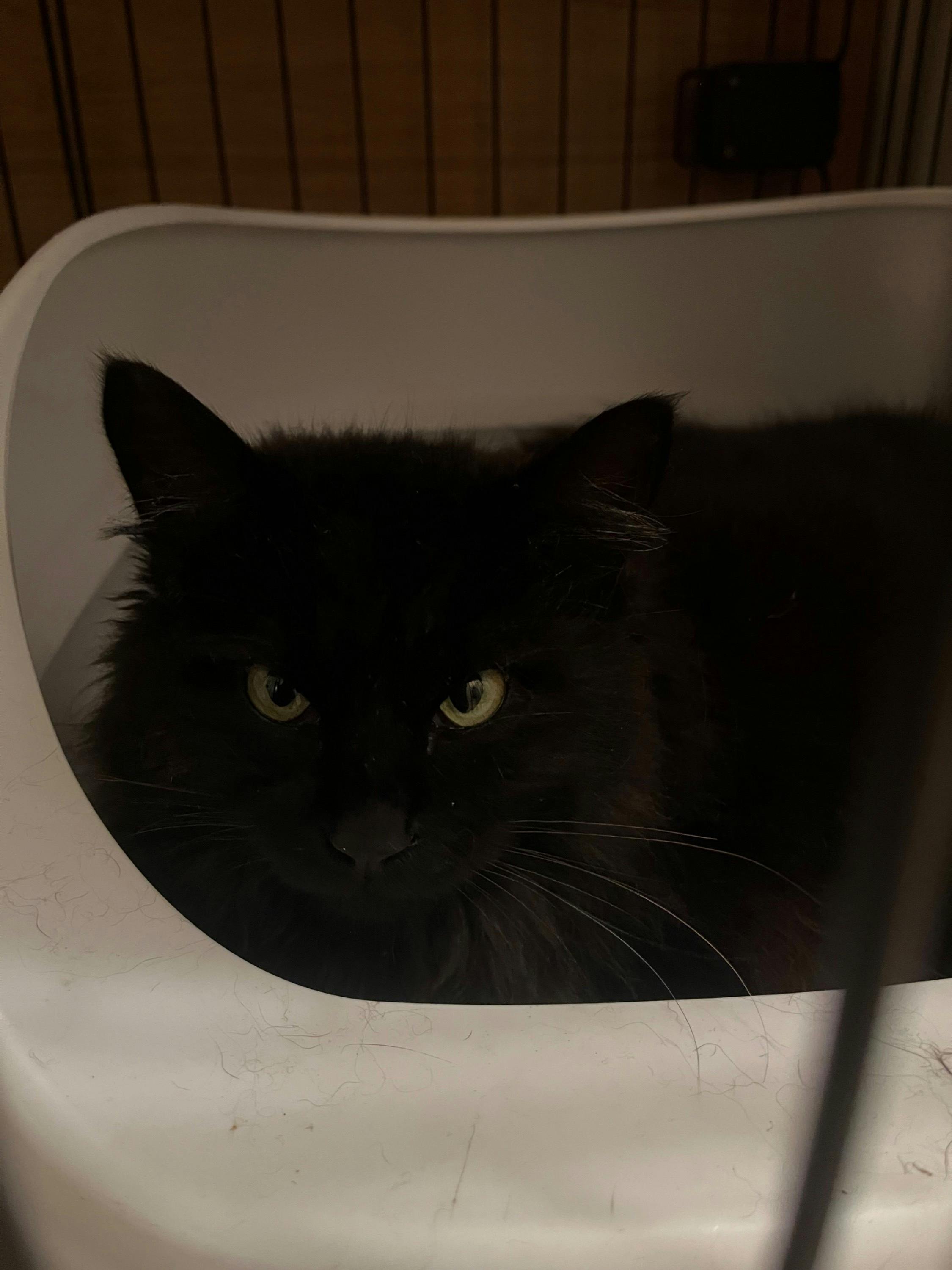 栄養失調で毛がボサボサの状態だったため、捕獲器で保護。避妊手術を実施しました。 - 2匹目