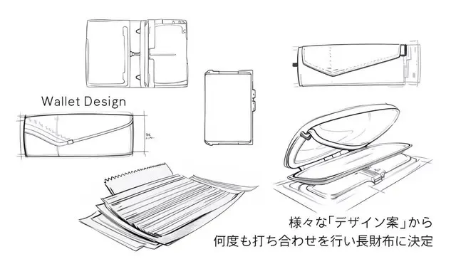 数えきれないほどの案から、風水のお財布にとって重要な要素を取り入れ長財布が選ばれました。