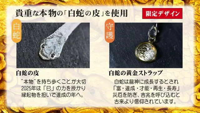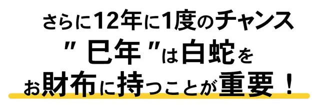 ご存じの通り古来より「白蛇」は龍神になるとされ、開運力は抜群!また巳年の本年はお財布の購入に最適なタイミング!何かを始める・人生を変えるのにおすすめの年と伝えられています!