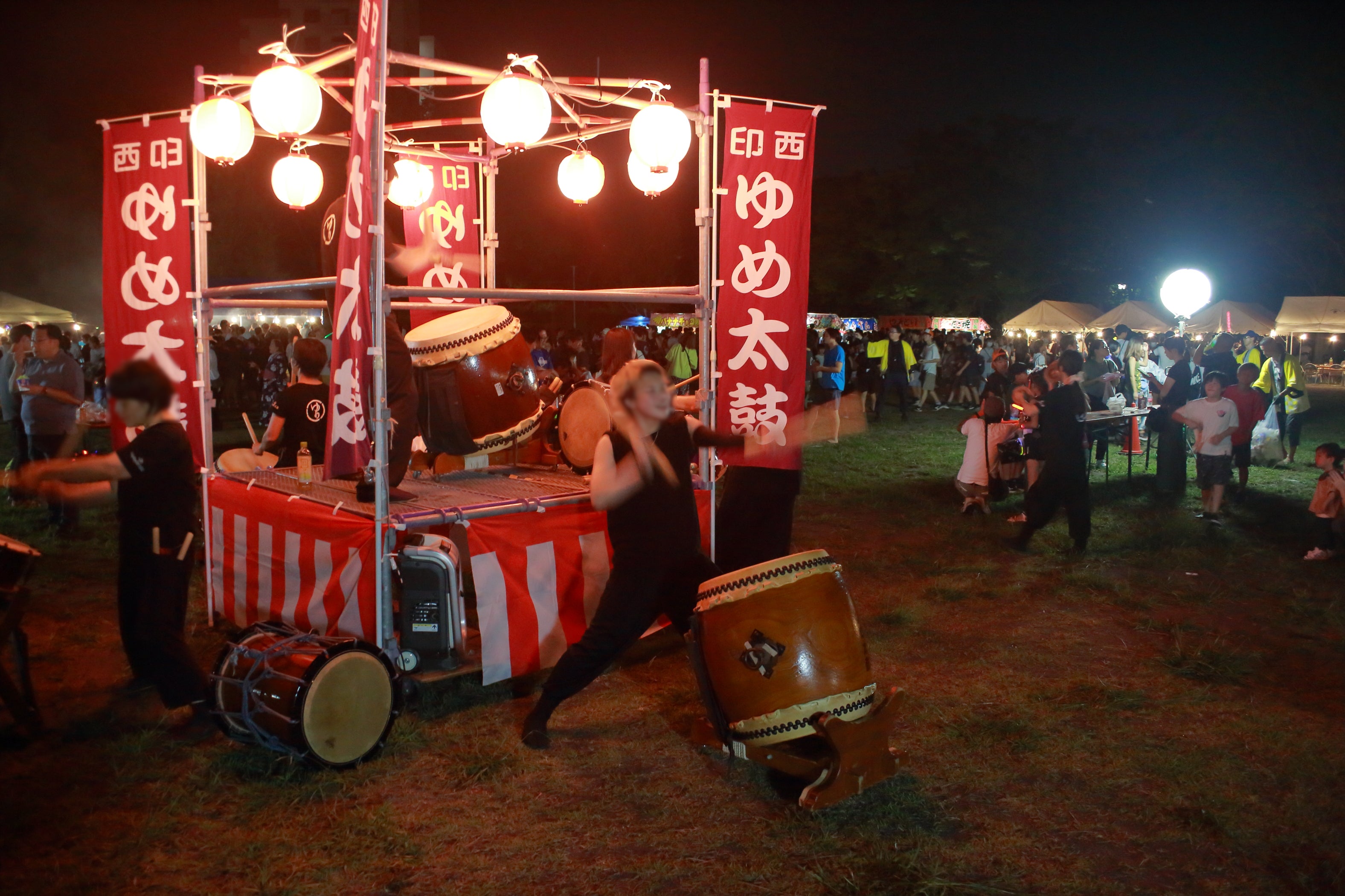 今年は急遽、櫓を追加設置。印西ゆめ太鼓さんの力強い演奏に合わせて盆踊りが行われ、例年以上に盛り上がることができました。