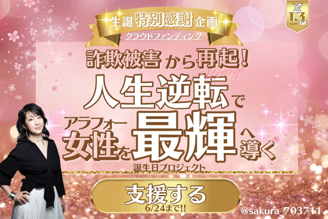 かつて詐欺被害により全てを失い、人生のどん底を経験しました。しかし、その苦難を乗り超え、現在は「悩み多きアラフォー女性の人生を最輝させる」という強い使命感を持って活動しています。