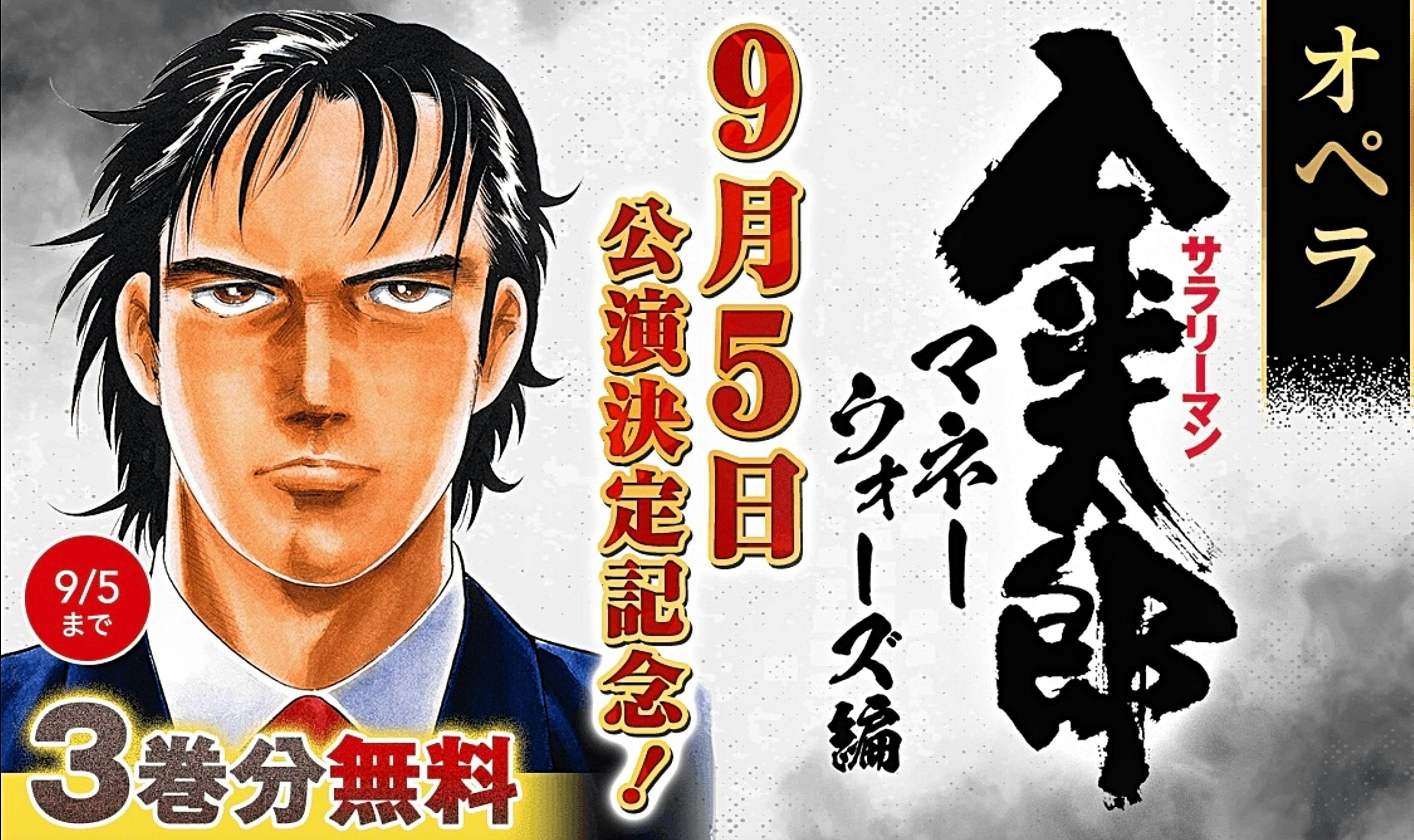 現在、集英社の青年漫画アプリ「ヤンジャン!」では、オペラ化を記念して 『サラリーマン金太郎』マネーウォーズ編を含む3巻分が無料公開中!