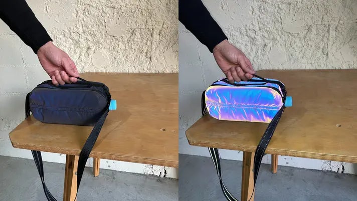今回使用するリフレクターは、従来のシルバー反射材ではなく、特殊な反射材である「LIGHT FORCE|ライトフォース」を採用しており、オーロラのように反射する特性を持っています。