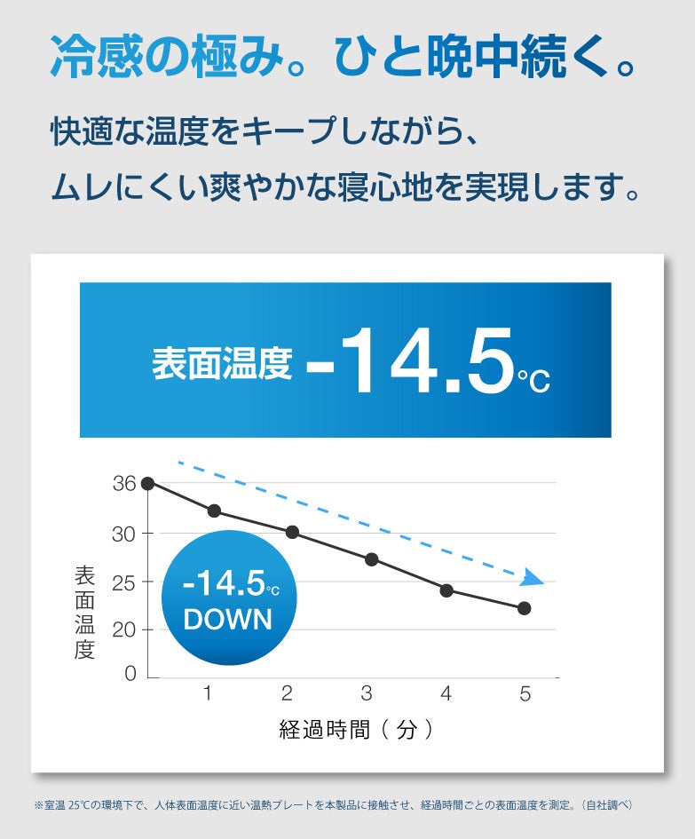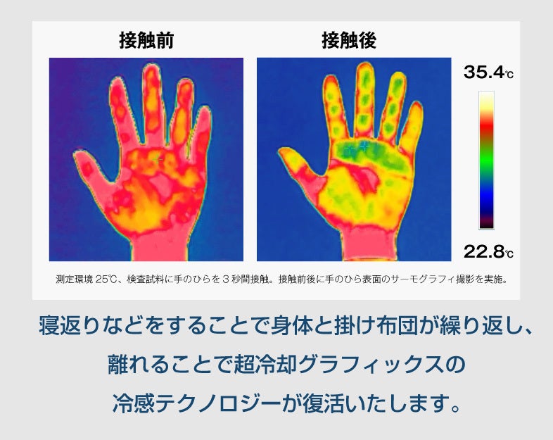 ※持続的な冷感効果とは、寝返りを打ったり、体と布団が離れることで、冷却機能が再び活性化し、冷たさが長時間続くことです。