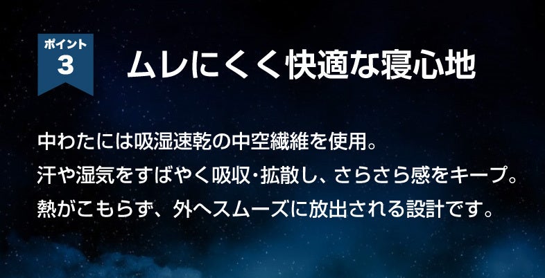 体からの熱や湿気をスムーズに逃がし、冷感が夜通し続く!