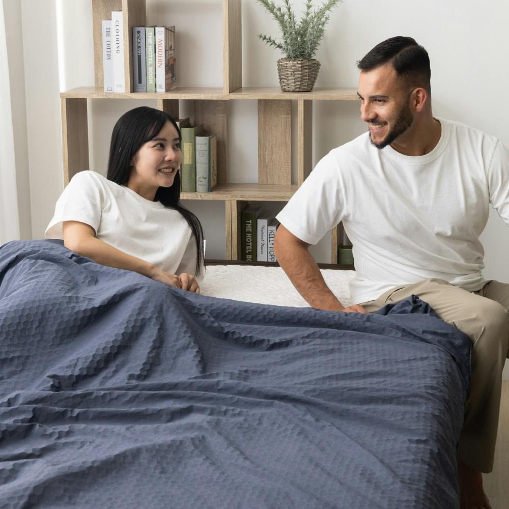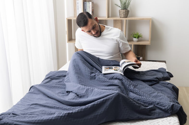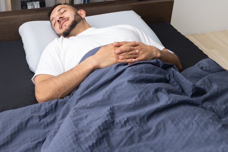 重たい掛け布団は、寝返りを妨げたり体に負担をかけたりすることも。『極涼プレミアム EX』は、わずか約1.25kgの超軽量設計。タオルケットのように軽く、ふんわりと体に寄り添いながらも、まとわりつきにくく快適な寝心地を実現します。
