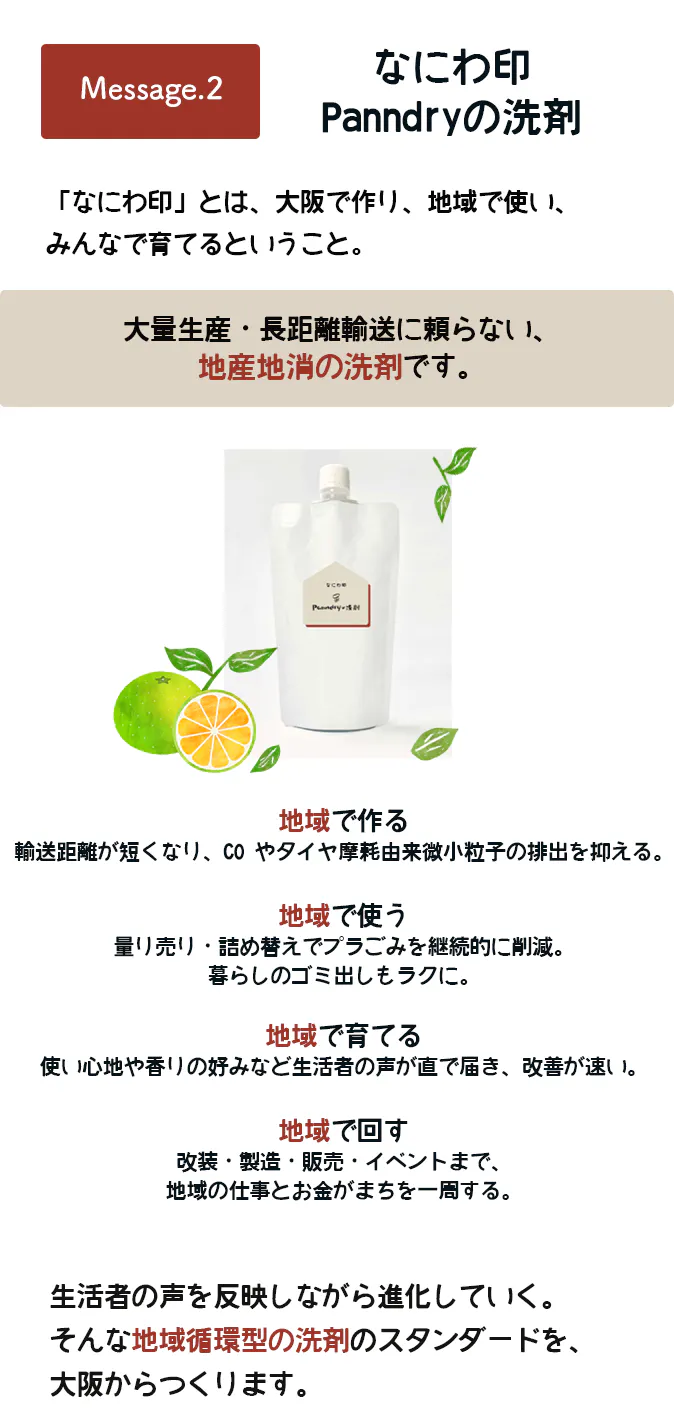 『なにわ印 Panndryの洗剤』は、その大阪からの第一歩となります。