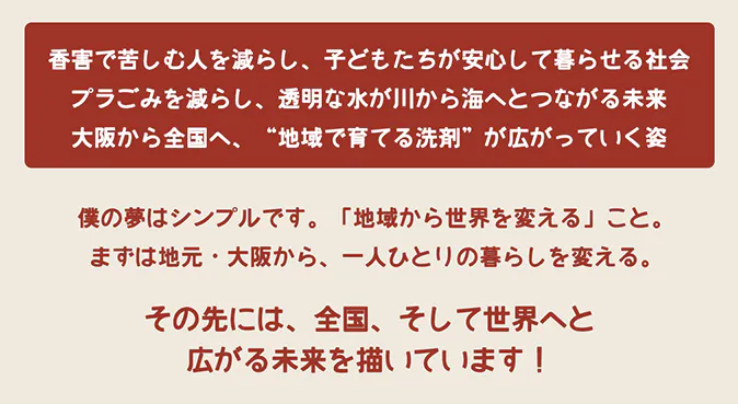 僕は今、新しい洗剤『なにわ印 Panndryの洗剤』をつくる挑戦を始めようとしています。