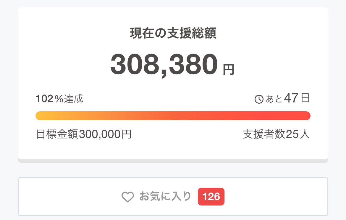 改めまして、みなさまたくさんの応援、ご支援と拡散していただき誠にありがとうございました!!おかげさまで、10/31(金)21時より公開し、11/1(土)19時半ごろに目標としていた24時間以内に目標金額である300,000円のご支援をいただくことができました!!