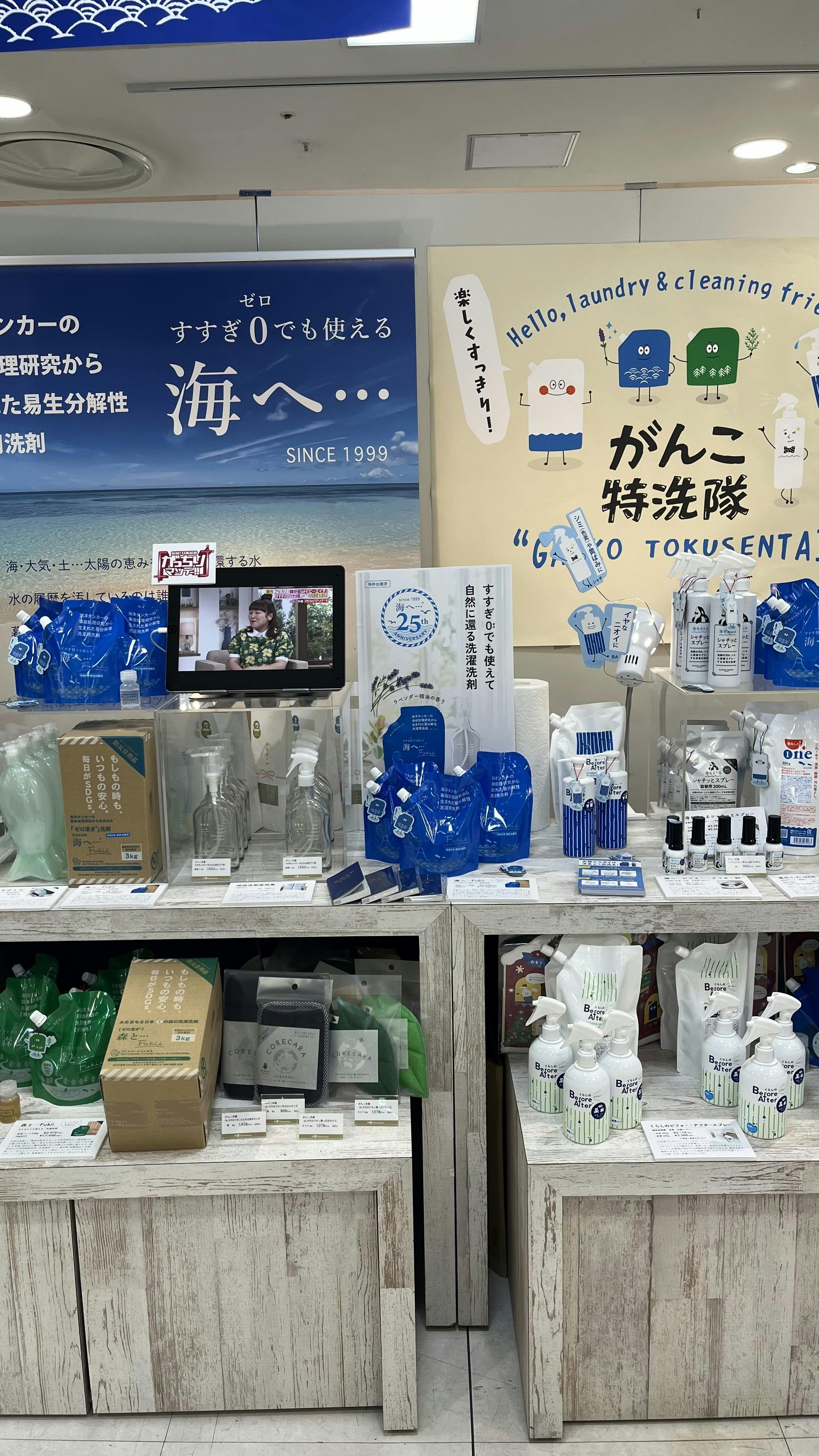 最初はなかなかうまくできませんでしたが、途中からコツを掴んできて、「洗剤の学校」をお見せしながら、見ていただいている方々と会話を交えることもできるようになりました!