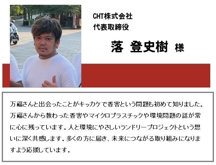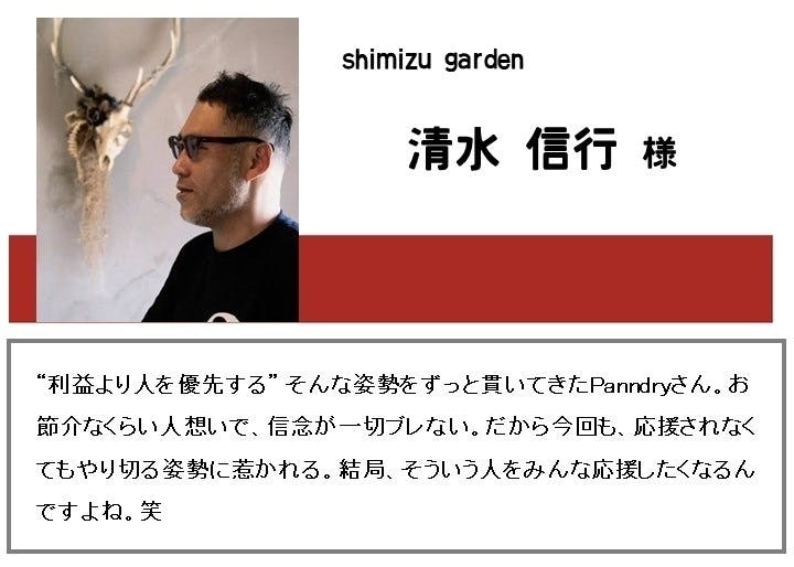 クラファンの応援メッセージいただきました!サムネイルにもある通り、3rd GOALの2,500,000円を目指しており、現在多くの方々にご支援いただいているおかげで、もうすでに1,320,664円まで集まっております!ご支援いただいている方々だけでなく、応援・拡散していただいている方々にも深く御礼申し上げます!!今回のクラウドファンディングは、ただPanndryを応援するだけでなく、Panndryが取り組んでいる「香害」に苦しむ方々や「マイクロプラスチック」によって汚染され続けている地球環境をより善くしていくために繋がっていくと考えています。なので、ぜひとも応援、ご支援や拡散の方よろしくお願いいたします!!