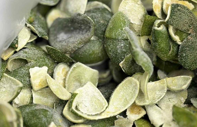 皮から天然精油を抽出し、洗剤の香りと洗浄力を兼ね備えた原料として使用します。
