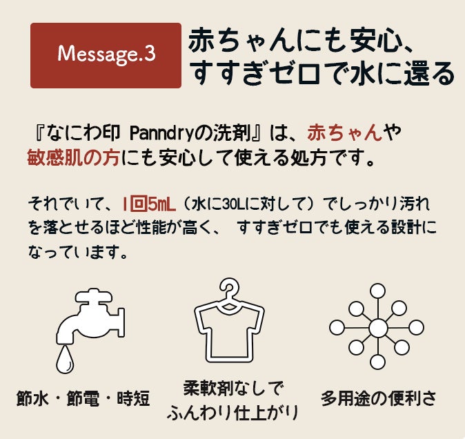 『なにわ印 Panndryの洗剤』は、その大阪からの第一歩となります。