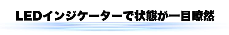 電源ON/OFF、動作中、充電中がひと目でわかる表示つき。
