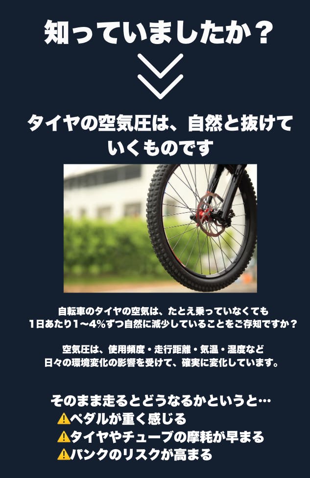 その場で補充できる手段があれば、パンクや体力消耗のリスクを回避できます。