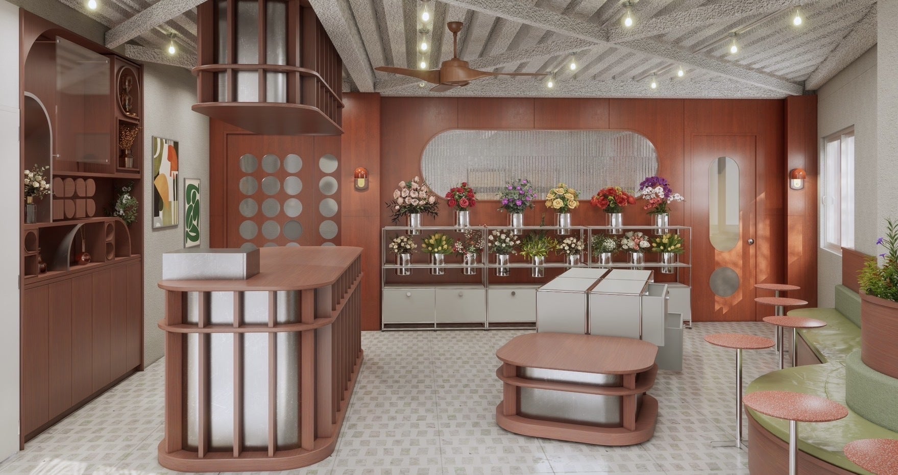 花束やアレンジメントも、その場でオーダー&お渡し可能。心も身体も軽くなる場所を目指します。▫️2F | 就労継続支援B型 福祉施設 & オフィススペース