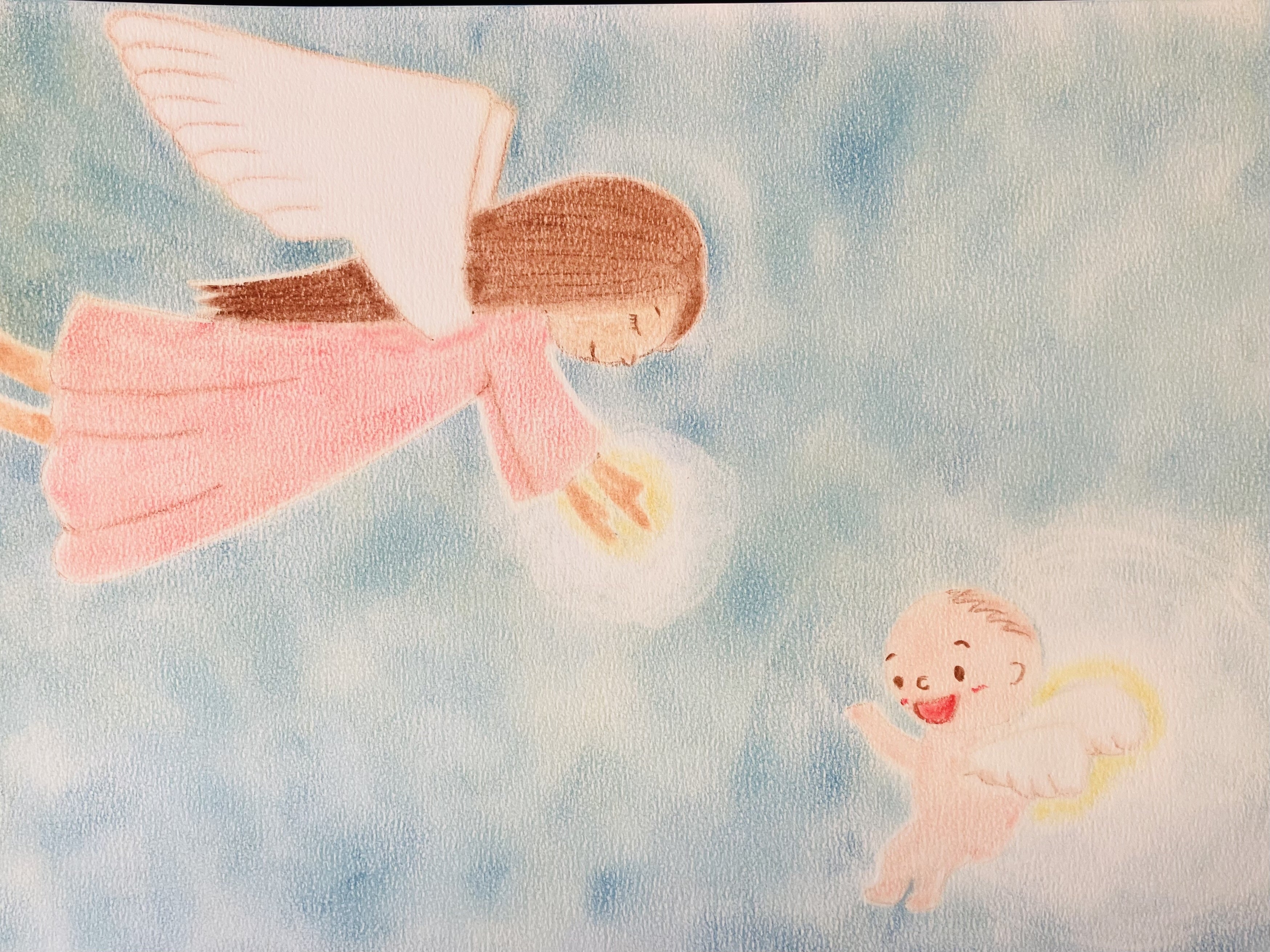 羽を付けてもらった長女は、天使と一緒に雲の下に降りて来たそうです。