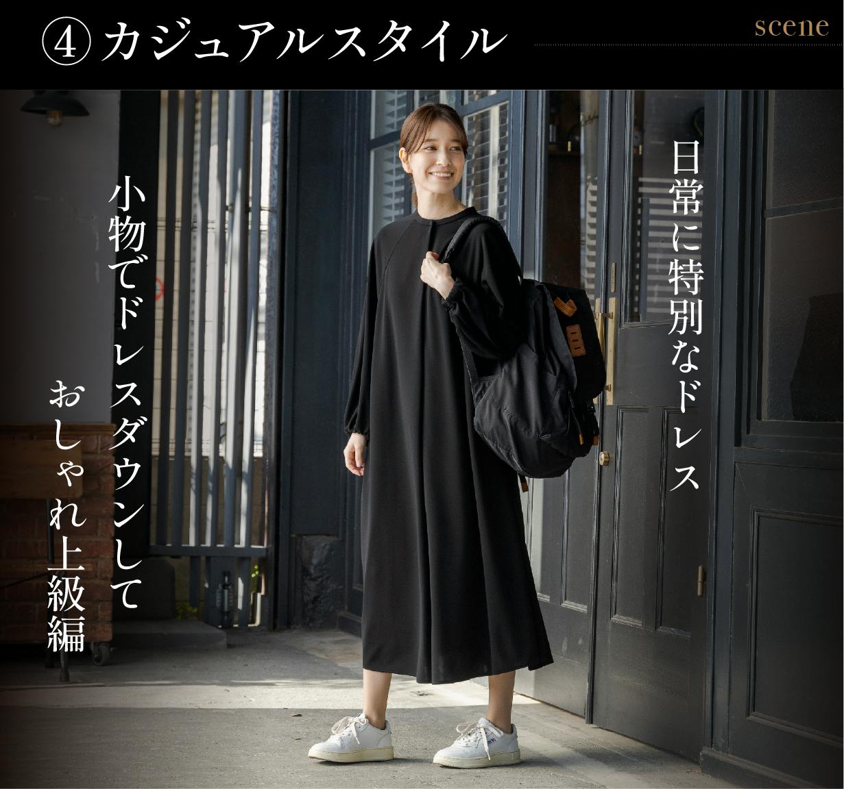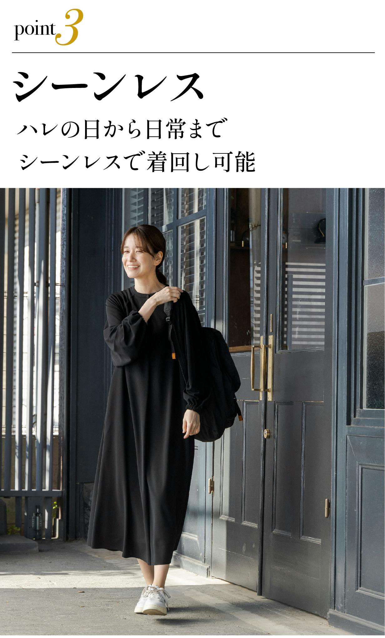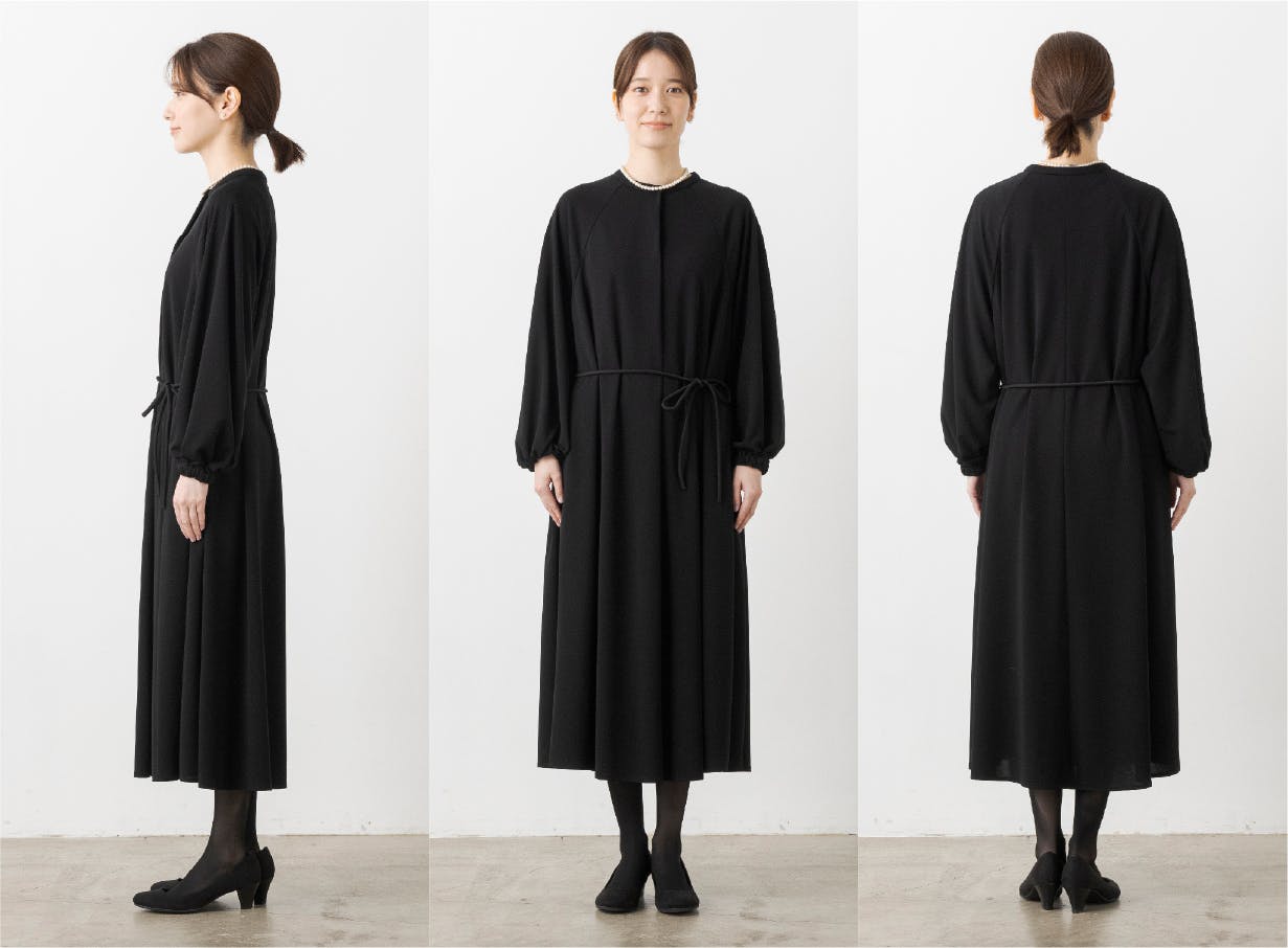 弔事のみならず、学校行事、結婚式などのセレモニーシーンやカジュアルなおしゃれ着としてもシーンレスに着回せる万能ドレスを目指しました。