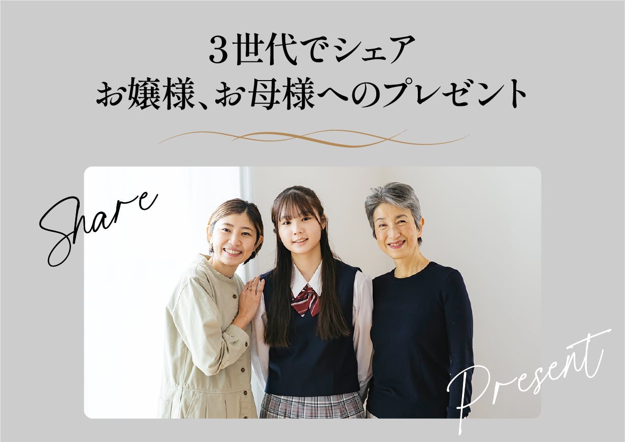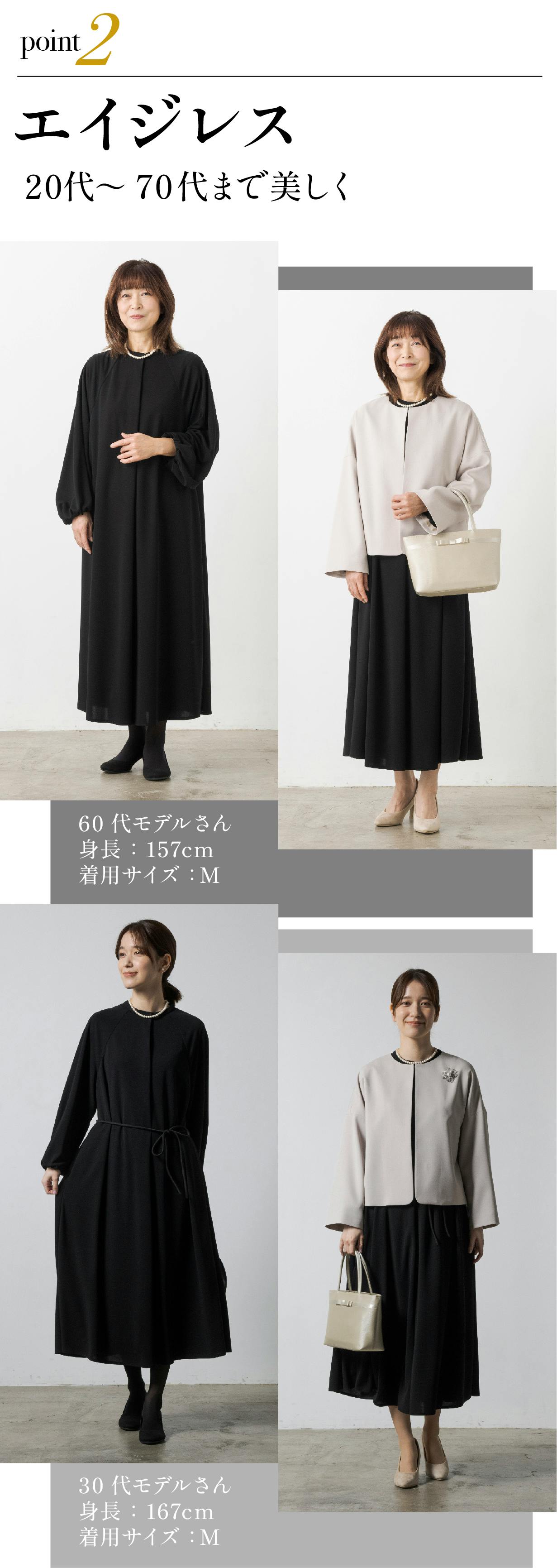 世代を問わないデザインのブラックフォーマルは祖母、母、娘でシェアも可。