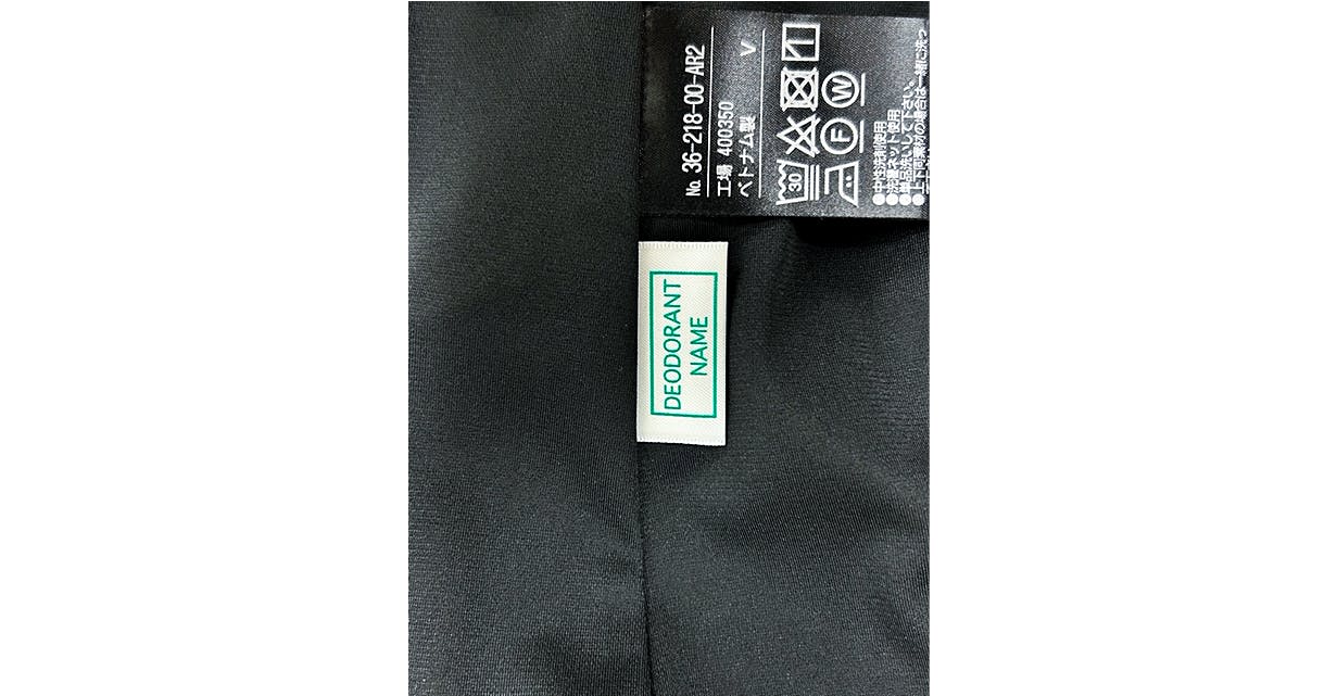 消臭&抗菌性効果に優れたフィルムラミネート消臭ネームです。無機物微粒子と銀成分を特殊な樹脂に練りこみフィルム化されています。様々な素材に適用でき、洗濯やドライクリーニングでも機能を維持することができます。