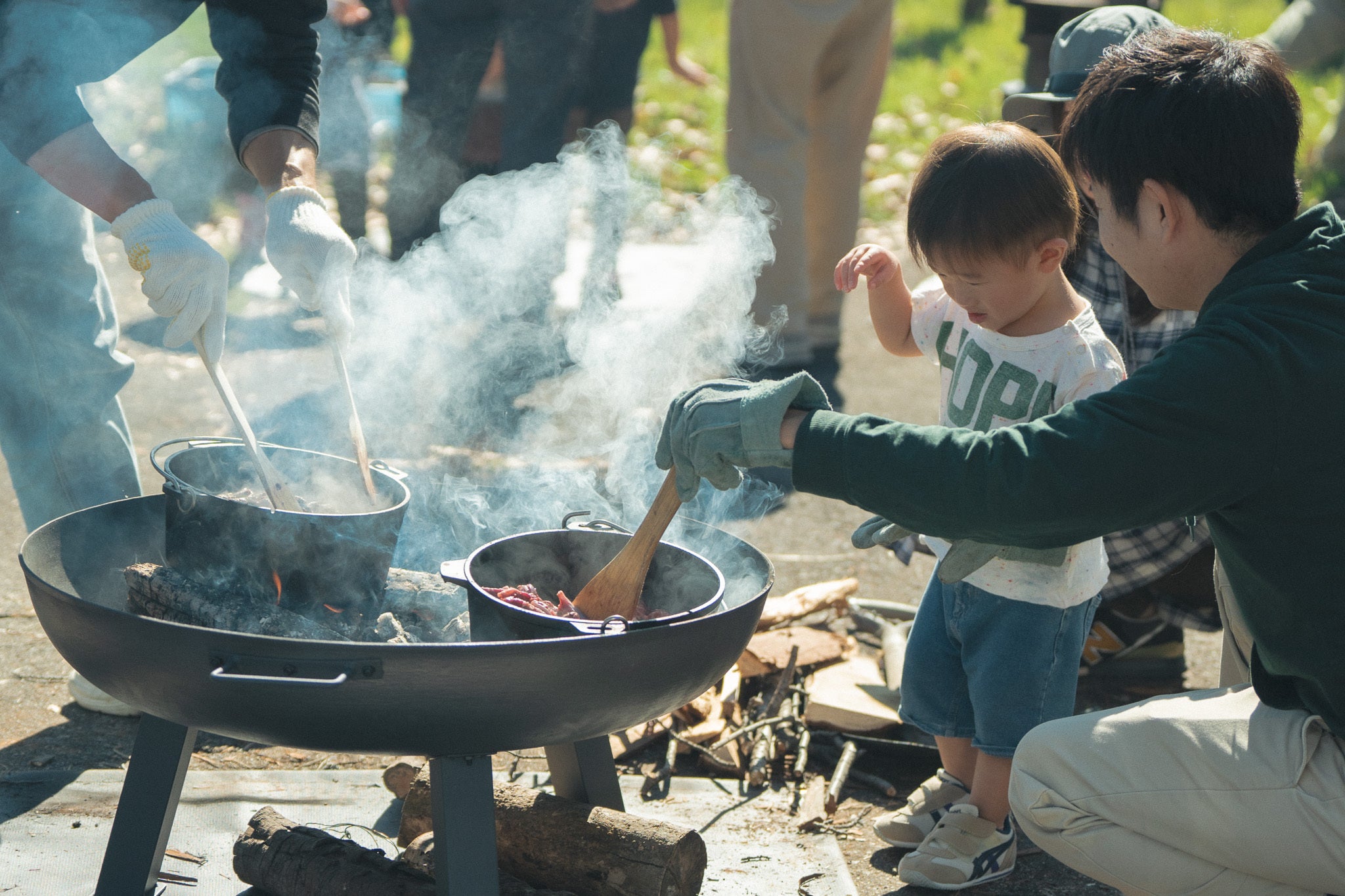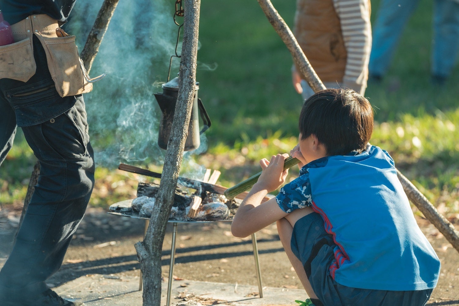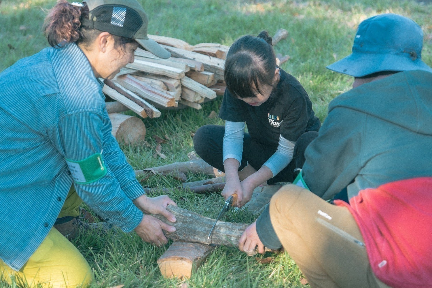 薪割りも火おこしも、こどもたちがチャレンジ。