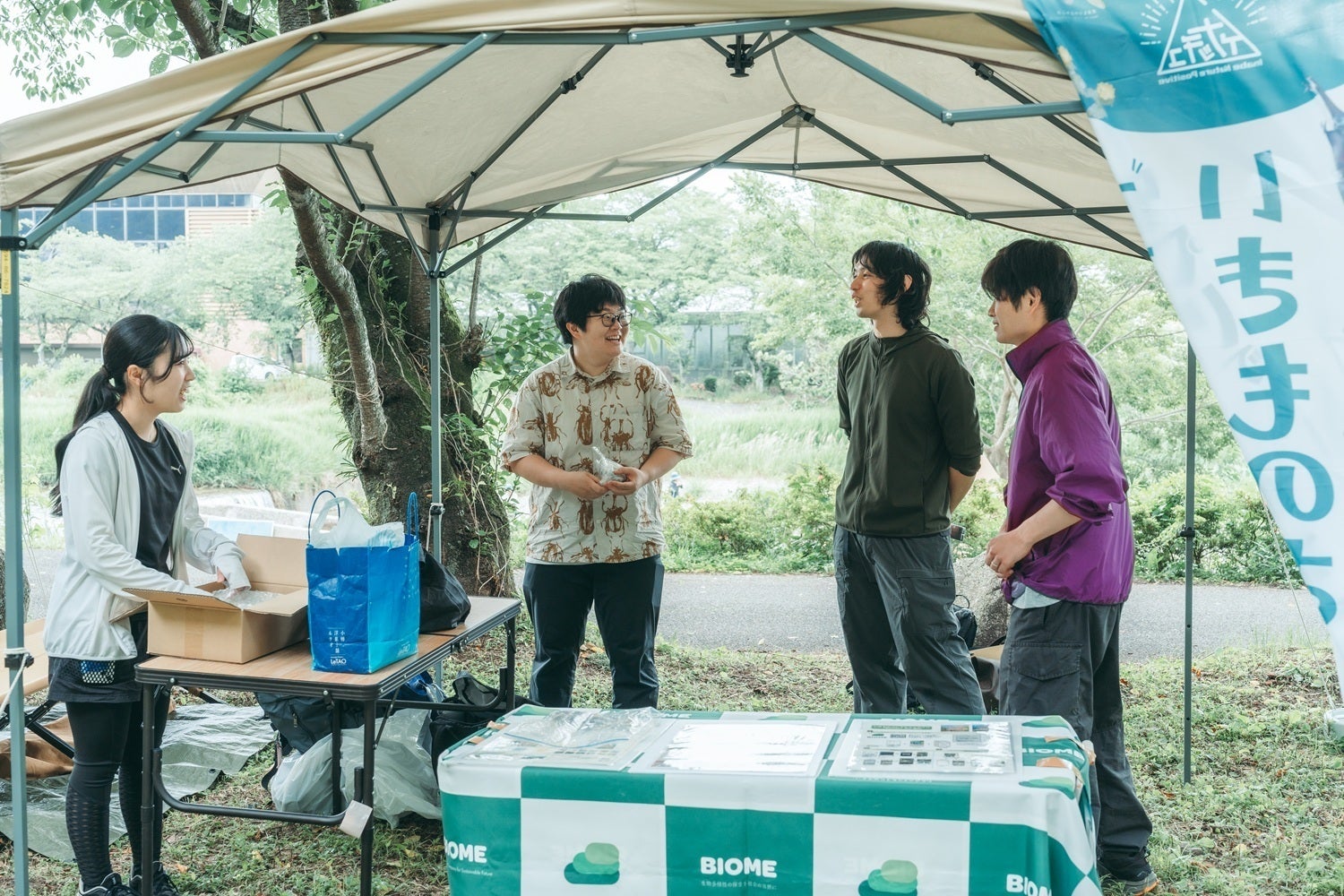 イベントのスタッフとして、生き物や自然体験に知見がある市民、大学、企業、近隣市町の方にお手伝いいただいています。会場整備や駐車場案内には地域のボランティアの皆さんにも大変お世話になっています。