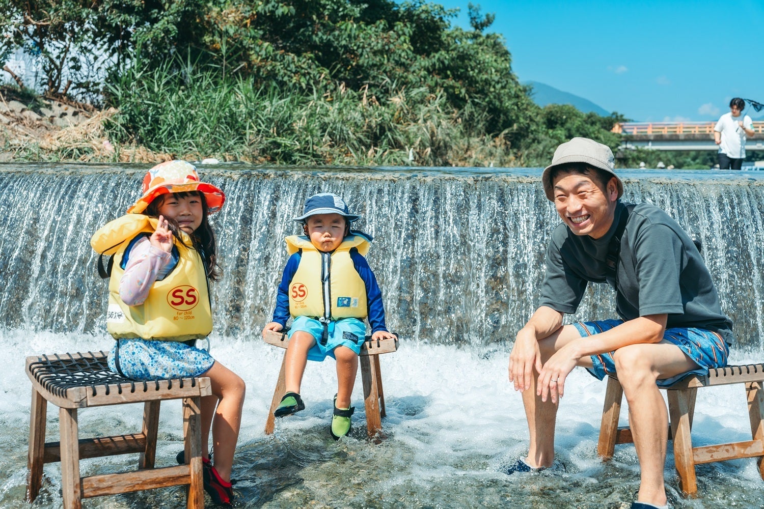 宇賀川。流れがゆるく、川遊びに適しています!イベントでも大人の見守りはもちろん必須です。