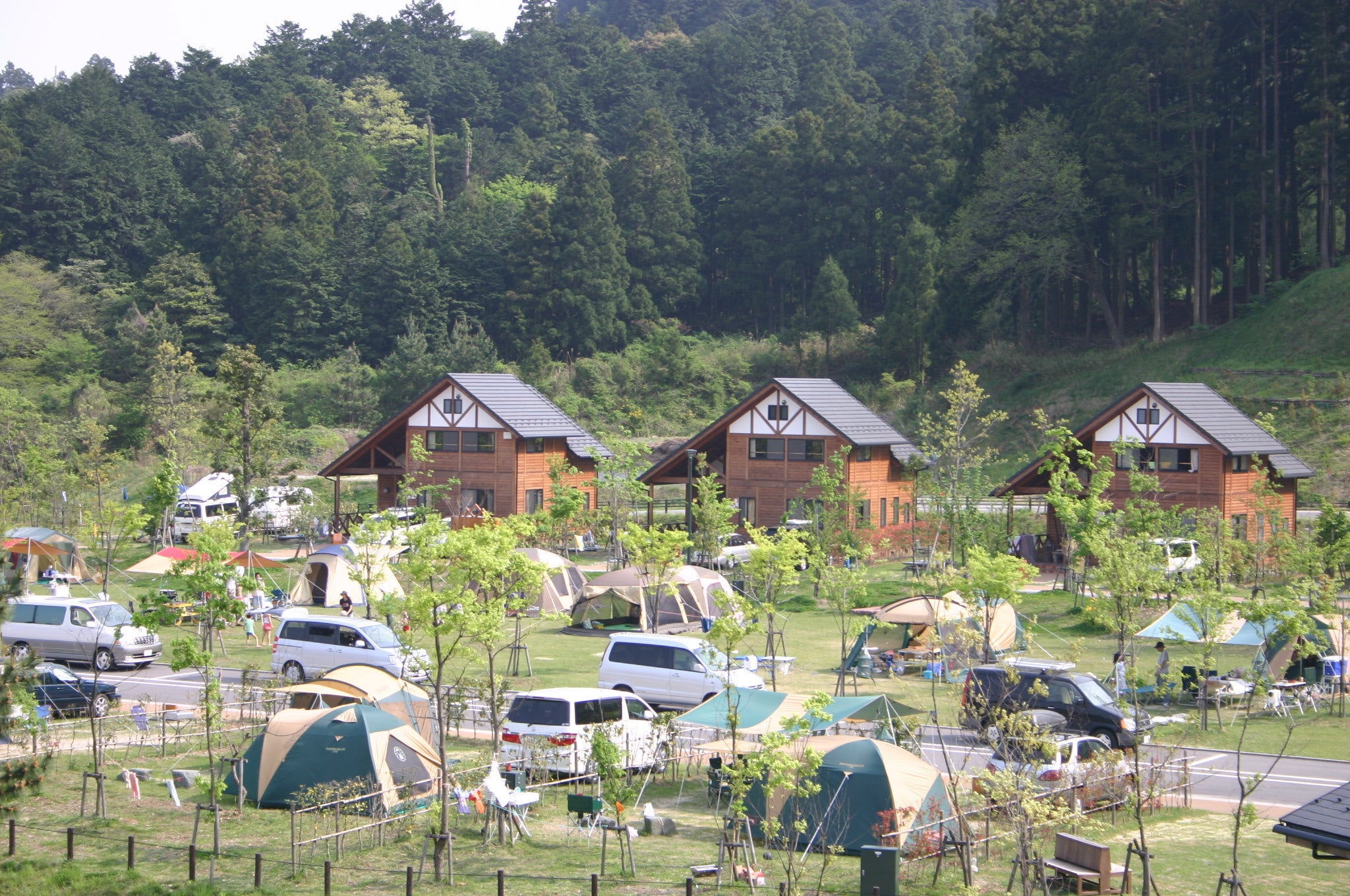 テント泊、コテージ泊などさまざまなキャンプスタイルが楽しめる青川峡キャンピングパーク。