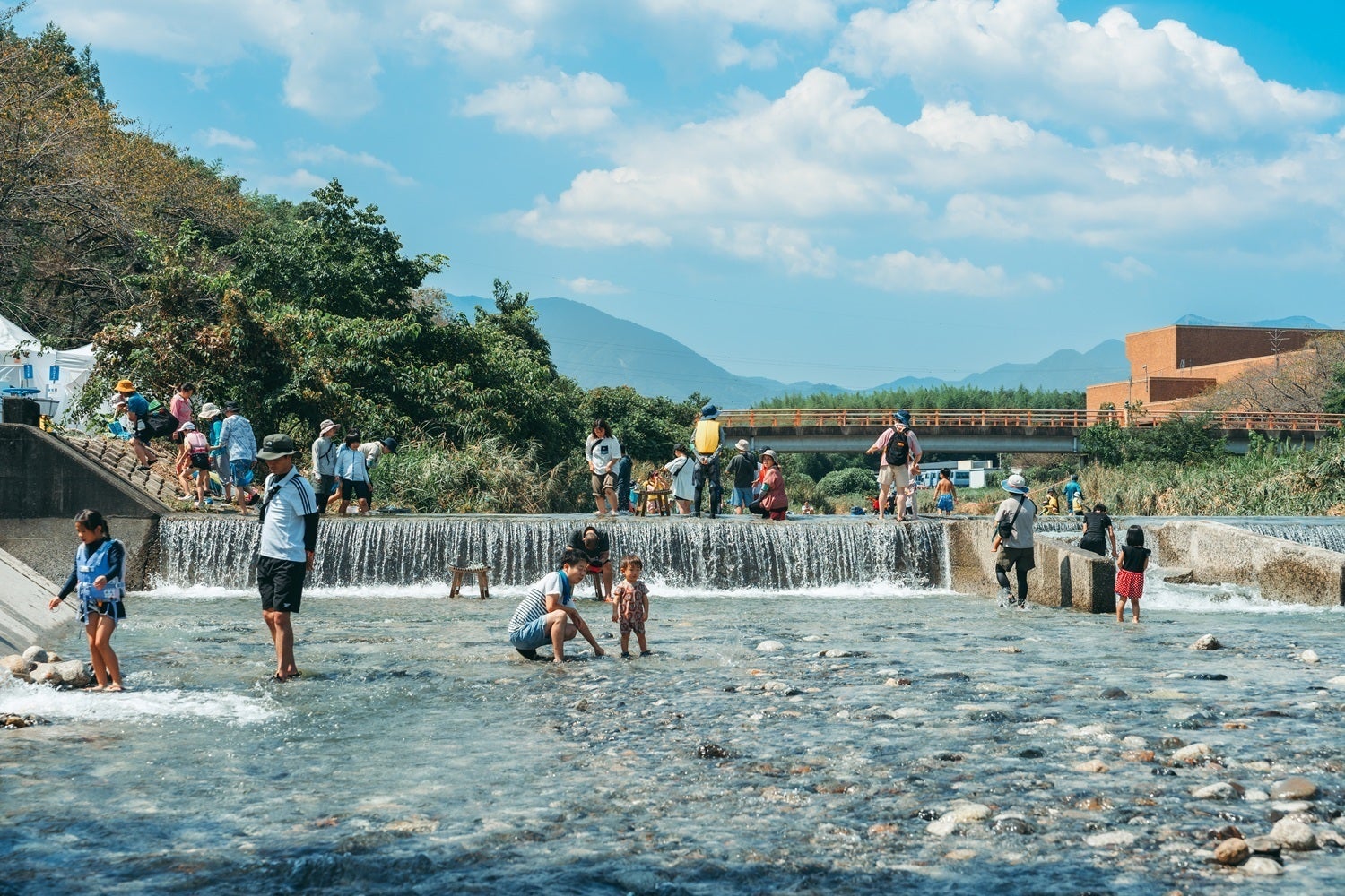 宇賀川。流れがゆるく、川遊びに適しています!イベントでも大人の見守りはもちろん必須です。