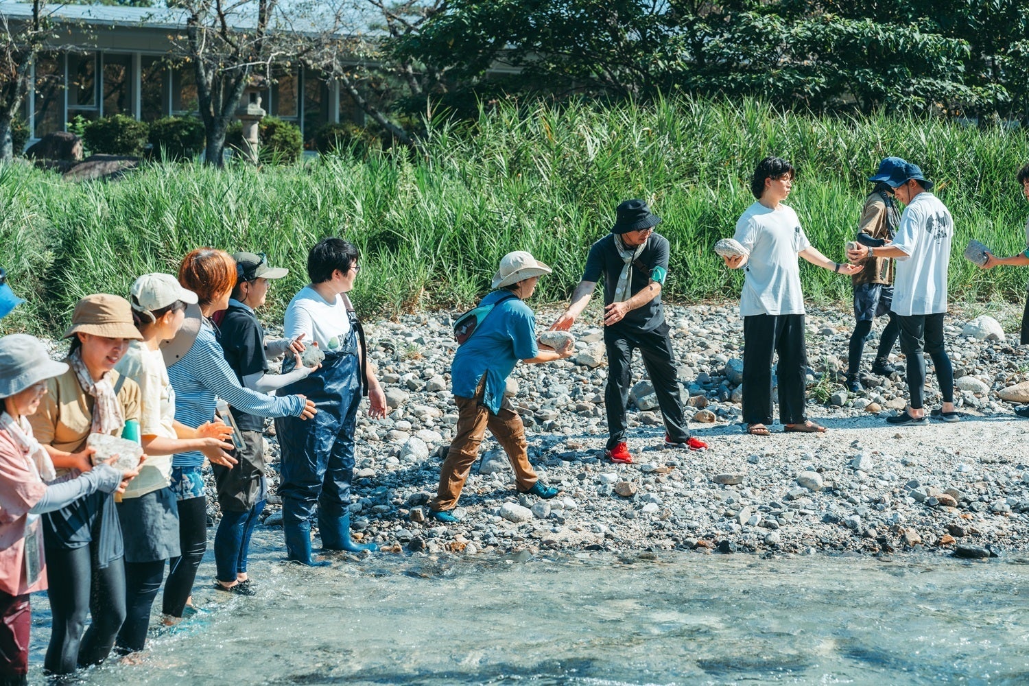 川遊びは特に安全管理が必要。毎回20名以上のスタッフが集まります。