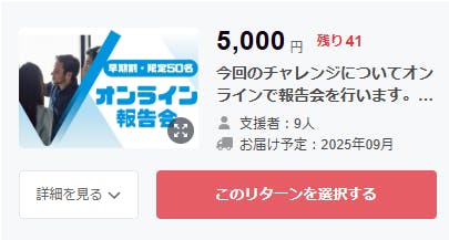 このあたりの詳細に関してはリターンにある報告会でさせていただきますので、ご支援がまだの方はぜひしていただけると嬉しいなと思います。