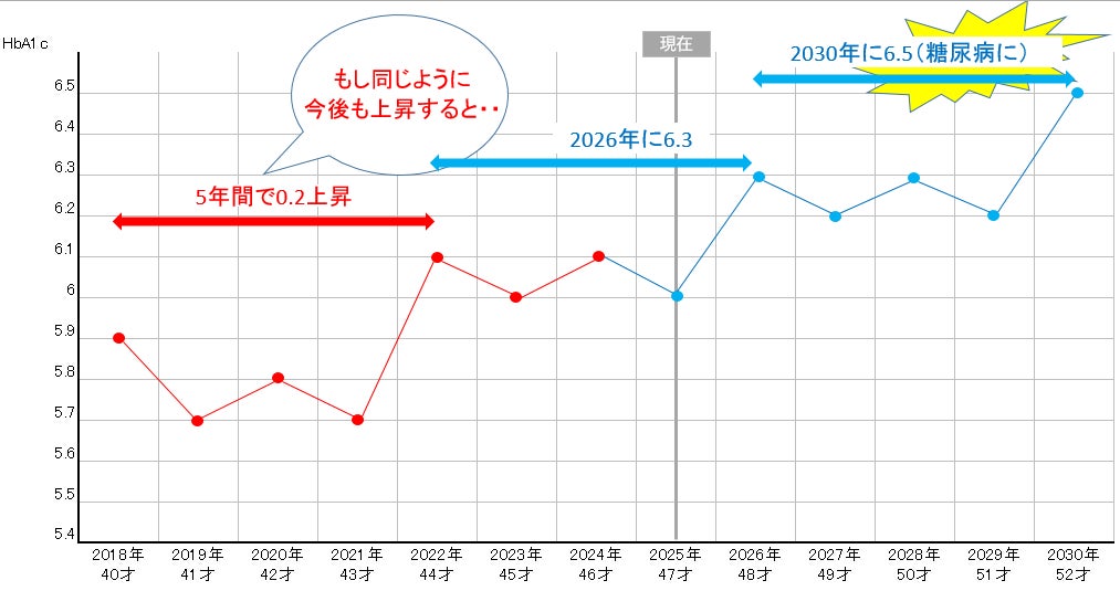 5年後の2030年には、糖尿病になります。