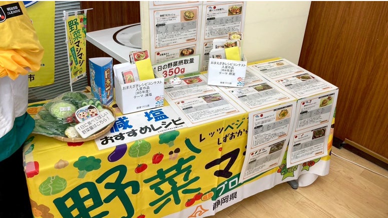 店内イートインスペースにてブースを設置し、骨密度測定、血圧測定、血管年齢測定、ベジチェック測定を実施。参加頂いた方には、伊藤園 野菜ジュース 1日分の野菜を配り、野菜摂取の啓発にもつなげました。