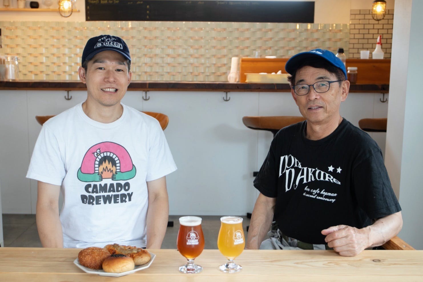 (左)パン職人 松阪鉄平 (右)カマドブリュワリー醸造長 丹羽智