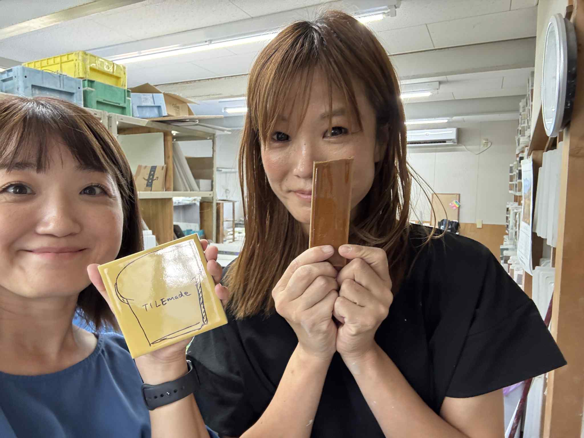 TILE made代表の玉川幸枝さんと、玉川釉薬社長の玉川さん姉(井戸尋子社長)
