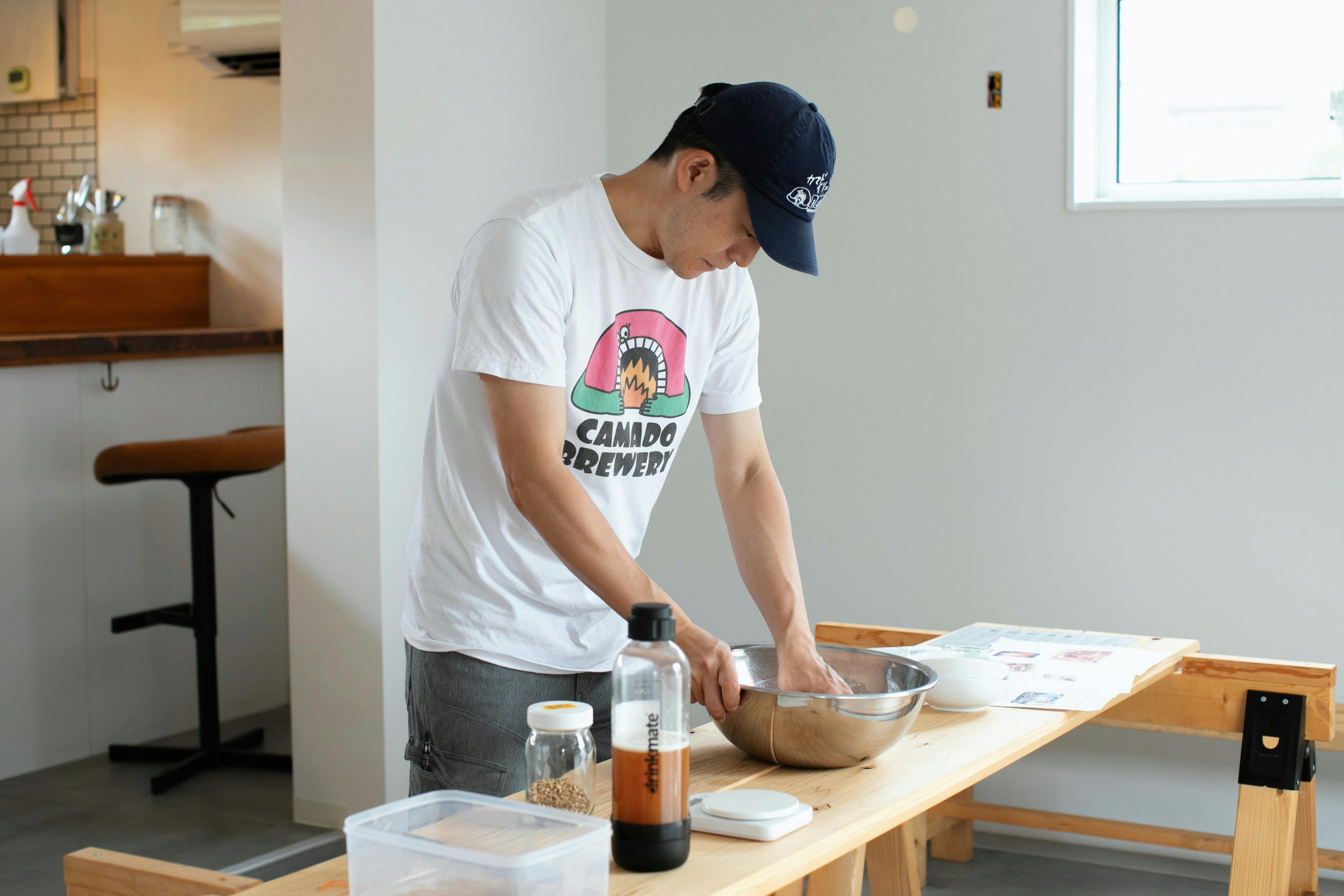 クラフトビールの技術習得に励むためカマドブリュワリーに弟子入りしていました。