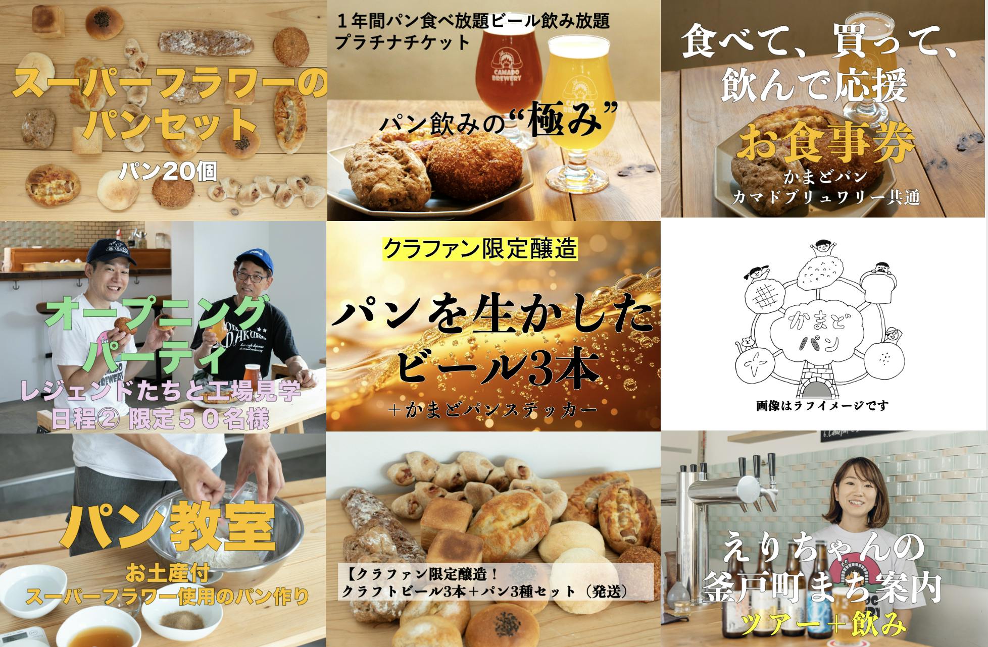 オープニングパーティや、工場見学、パン教室など体験型のリターンも!