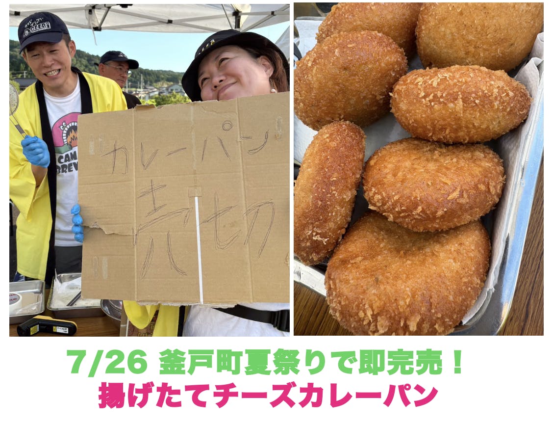 釜戸町夏祭りでは、揚げたてカレーパンを100個提供しましたが、