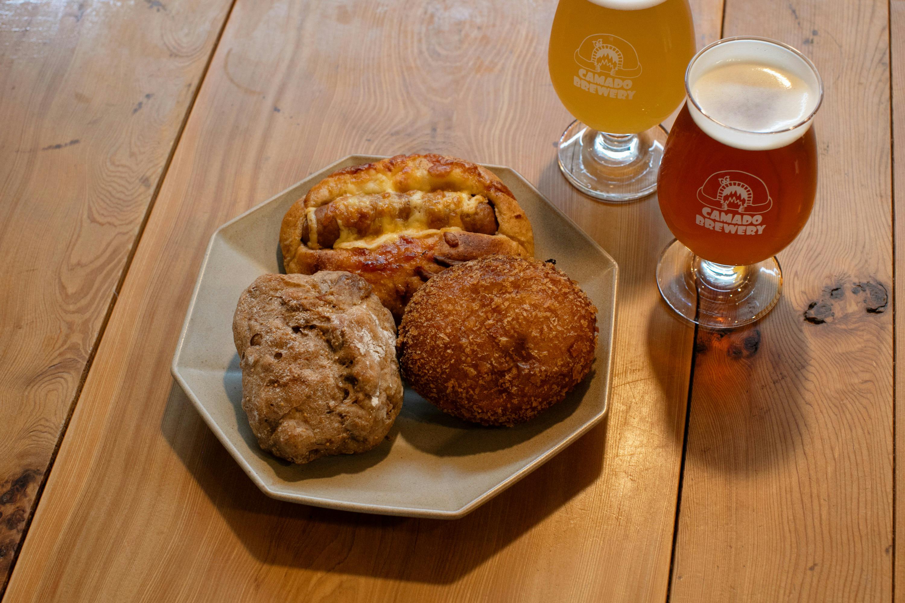 クラフトビールとパンのセット、限定醸造ビールだけでなく