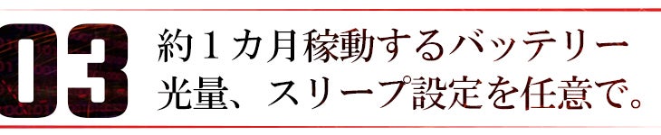 非稼動時の省エネ構造によって1回の充電で約1カ月稼動します。