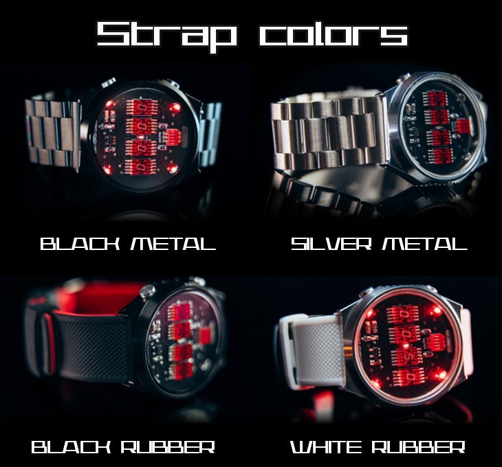 本体カラーは2色、ストラップはメタルベルトとラバーベルトの2パターン展開となります。付け替えもご自身で簡単にできますので仕事ではメタルベルト、プライベートではラバーベルトなど使い分けてもTIME REDをお楽しみ頂けます。