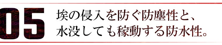 IP67の防水・防塵性でホコリの侵入を防ぎ、水中でも稼動する性能を兼ね備えています。