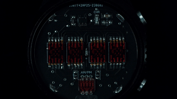 ボタンを押すとアニメーションと共にセグとバックライトが稼動します。非稼動時もメカニックなデザインであるからこそビジュアルだけで楽しむことができます。