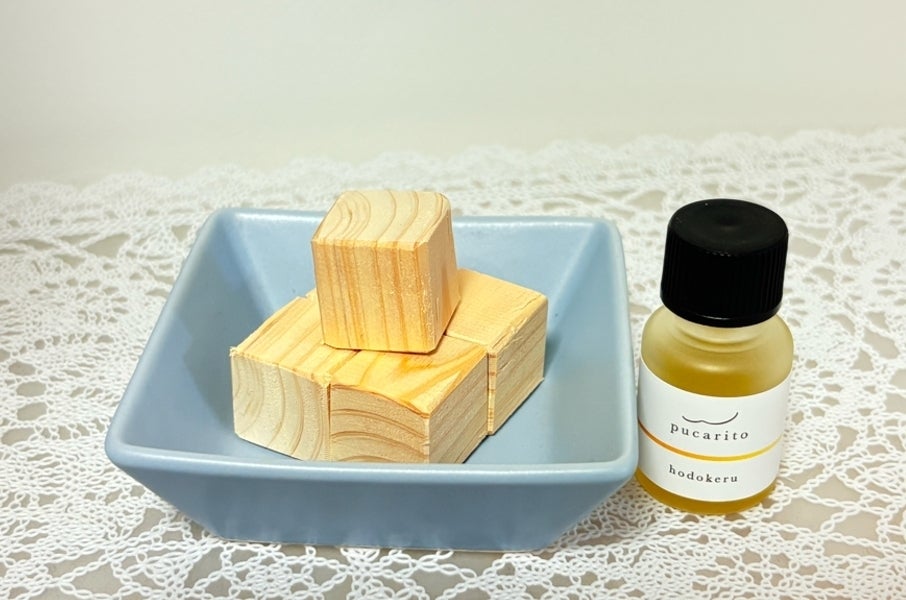 ヒノキの香りに包まれながら、森のストーリーを五感で楽しめます。 ※限定5セット/キューブ,コースターの在庫数に応じて変動あり