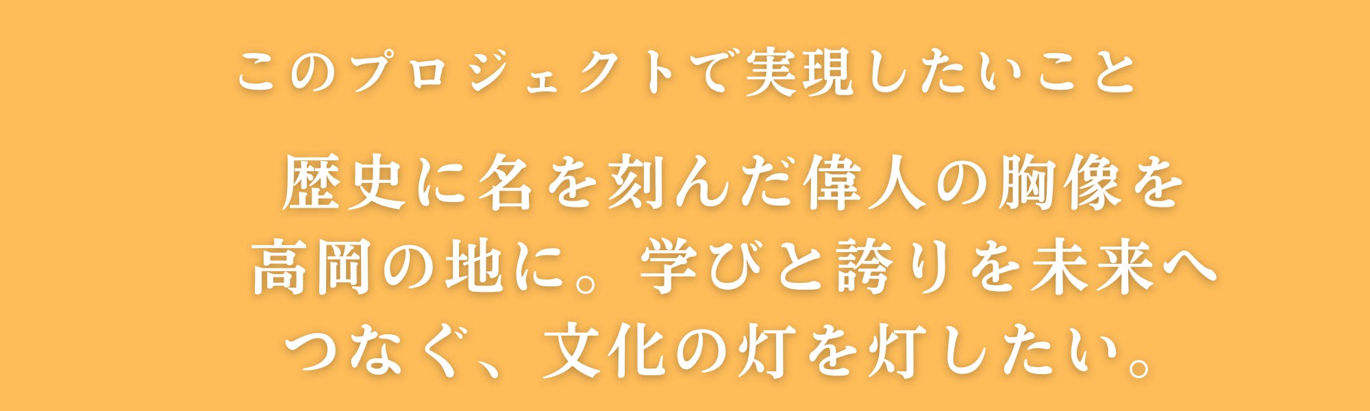 設置場所は高岡市と協議を進めています。原型デザインは地元彫刻家と検討を重ねており、高さ約80センチ(台座を除く)の青銅製胸像を想定して最終調整を進めています。プロジェクトを広く周知するため、クラウドファンディングにも挑戦し、全国の美術・歴史ファンにプロジェクトを知ってもらう広報にも力を入れています。