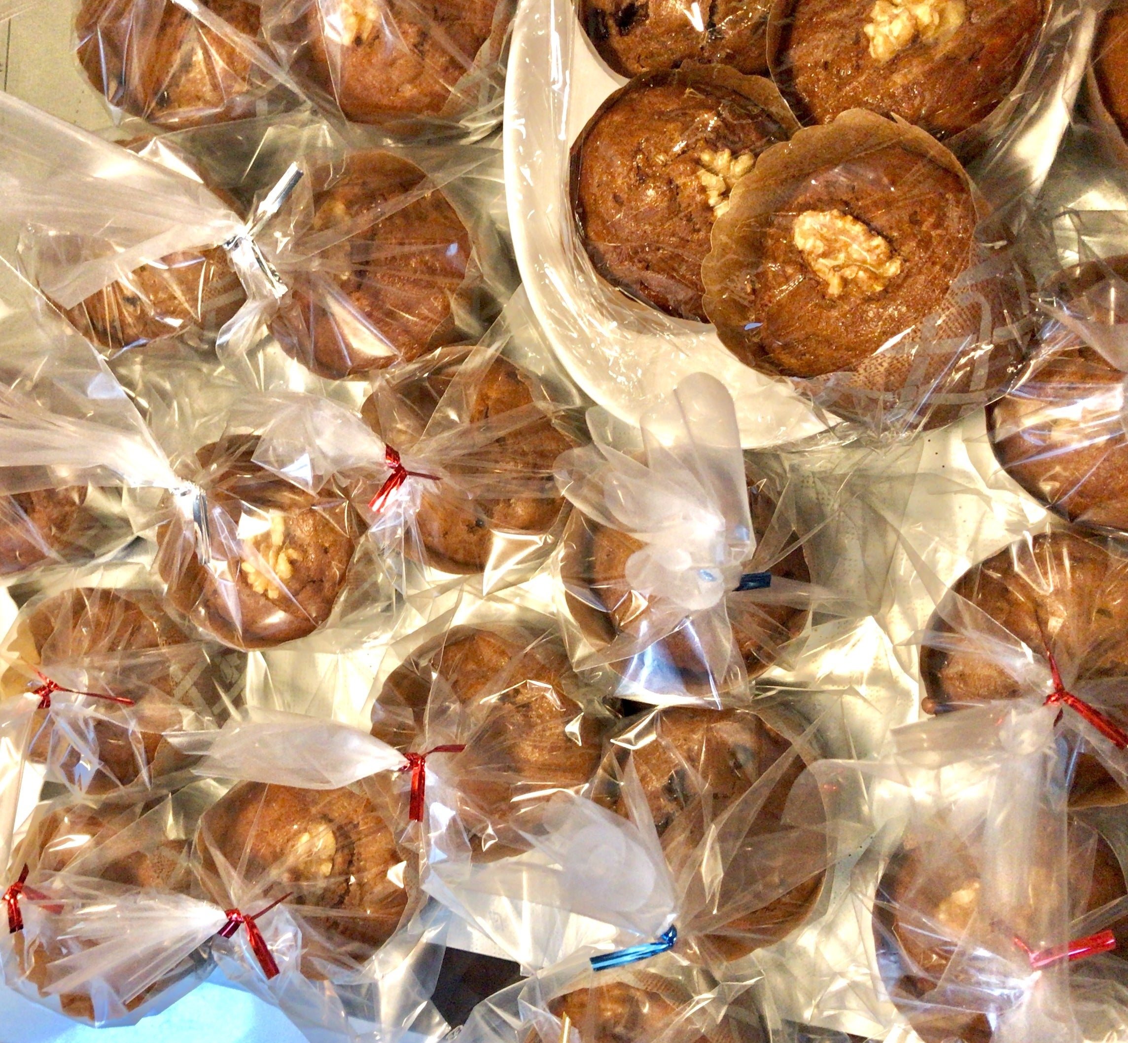 もともと子供の頃から料理やお菓子作りは大好きで、将来ケーキ屋さんになりたいと思っていた時期もありました。会社員になってから職場でコミュニケーションのためにも一役買ってくれるからと作ったお菓子を配ったり。2人目が生まれた時には退社を余儀なくされ、自宅で小学生に勉強を教える塾を開室した際には月1のテストの日のご褒美に手作りマフィンを渡したり。派遣社員として現場事務所で働いた時も体力仕事の職人さんたちへの差し入れにサンドウィッチやお菓子を焼いて持っていったり。会社員として再就職した時には職場対抗のウォーキングイベントのグループでみんなのやる気をアップさせるために、団結力高めるために、身体配慮マフィンを作ってプレゼントしたり。